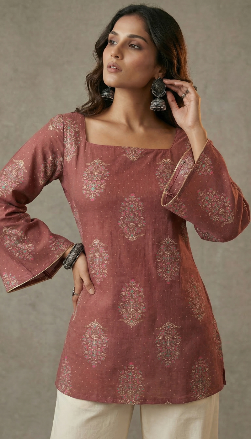 Add a perfect blend of elegance and comfort to your wardrobe with this pure cotton straight cut short top, designed for modern women who love minimal yet stylish ethnic wear.